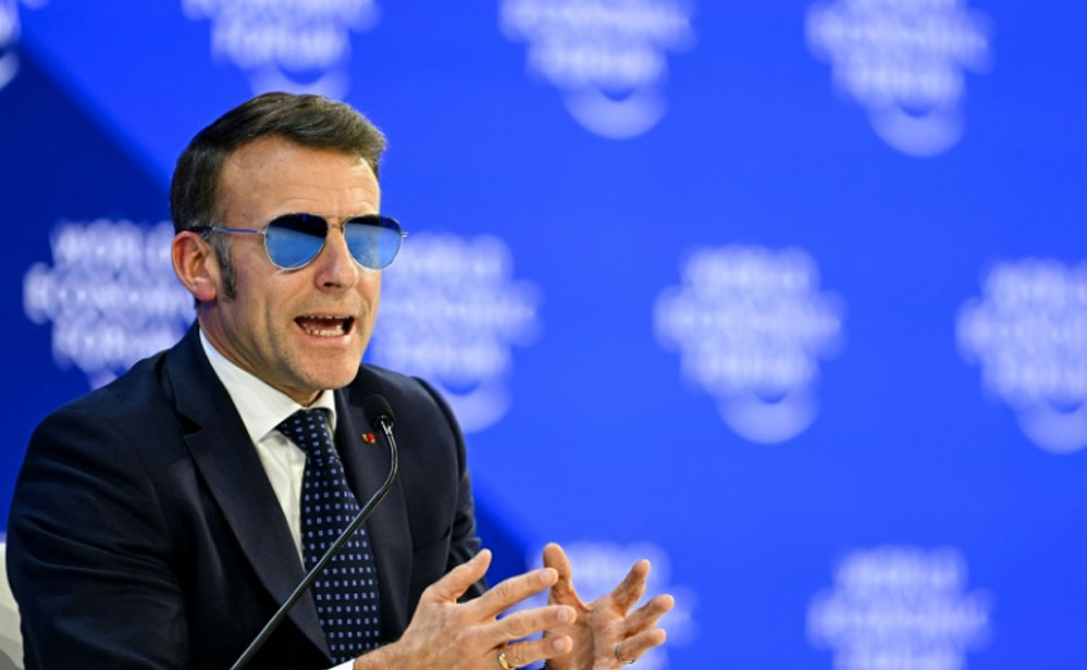 मैक्रों ने वर्ल्ड इकोनॉमिक फोरम में जुटे विश्व भर के नेताओं को आसामनी रंग सनग्लासेज पहने मैक्रों ने संबोधित करते हुए कहा, "देखिए हम किस स्थिति में हैं. मेरा मतलब है, डेमोक्रेसी के खिलाफ, तानाशाही की तरफ बदलाव. ज़्यादा हिंसा, 2024 में 60 से ज़्यादा युद्ध – यह एक बिल्कुल रिकॉर्ड है, भले ही मुझे पता चला कि उनमें से कुछ फिक्स थे. और टकराव नॉर्मल हो गया है, हाइब्रिड हो गया है, नई मांगों, जगह, डिजिटल जानकारी, साइबर, व्यापार वगैरह में फैल रहा है."