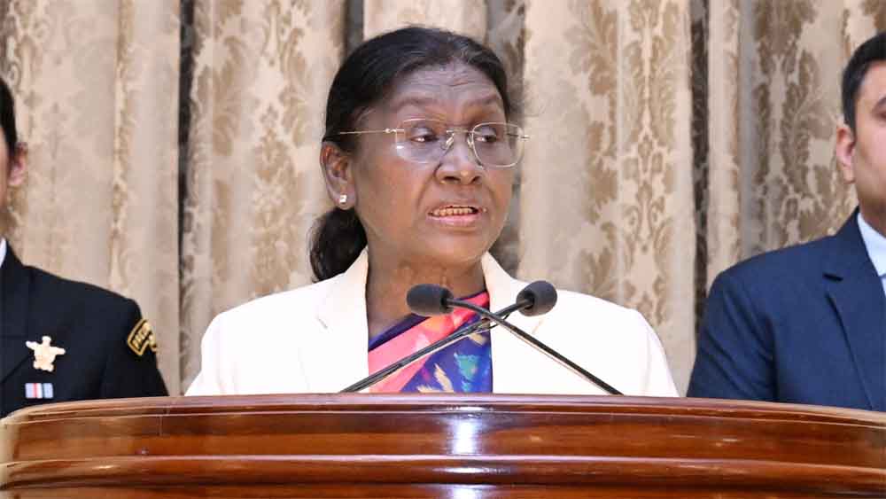 संसद के बजट सत्र की शुरुआत में दोनों सदनों की संयुक्त बैठक को संबोधित करते हुए मुर्मू ने कहा, ‘भारत ने सिद्ध किया है कि शक्ति का प्रयोग उत्तरदायित्व और विवेक के साथ किया जा सकता है। ऑपरेशन सिंदूर से विश्व ने भारतीय सेना का शौर्य और पराक्रम देखा है। हमारे देश ने अपने संसाधनों के बल पर आतंकियों के अड्डों को ध्वस्त कर दिया।’ उन्होंने कहा, ‘सरकार ने कड़ा संदेश दिया कि भारत पर किसी भी आतंकी हमले का जवाब दृढ़ और निर्णायक होगा। सिंधु जल समझौते को स्थगित किया जाना भी आतंकवाद के विरुद्ध हमारी लड़ाई का हिस्सा है। देश की रक्षा व्यवस्था को और मजबूत बनाने के लिए मिशन सुदर्शन चक्र पर भी काम हो रहा है।’