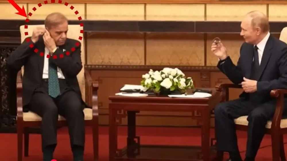वायरल वीडियो में दिख रहा है कि शहबाज शरीफ का ईयरफोन हेडसेट कानों में लगाने की कोशिश करने के बावजूद फिसलकर बार-बार गिर जा रहा है। इस दौरान पुतिन कुछ सेकंड तक जद्दोजहद करते शहबाज़ शरीफ को देखकर मुस्कुराते नजर आए। वैश्विक मंच पर शर्मिंदगी से बचने की कोशिश में, रूसी नेता ने पाकिस्तानी राष्ट्रपति को अपना ईयरफोन उठाकर दिखाया कि उसे कैसे लगाया जाता है।