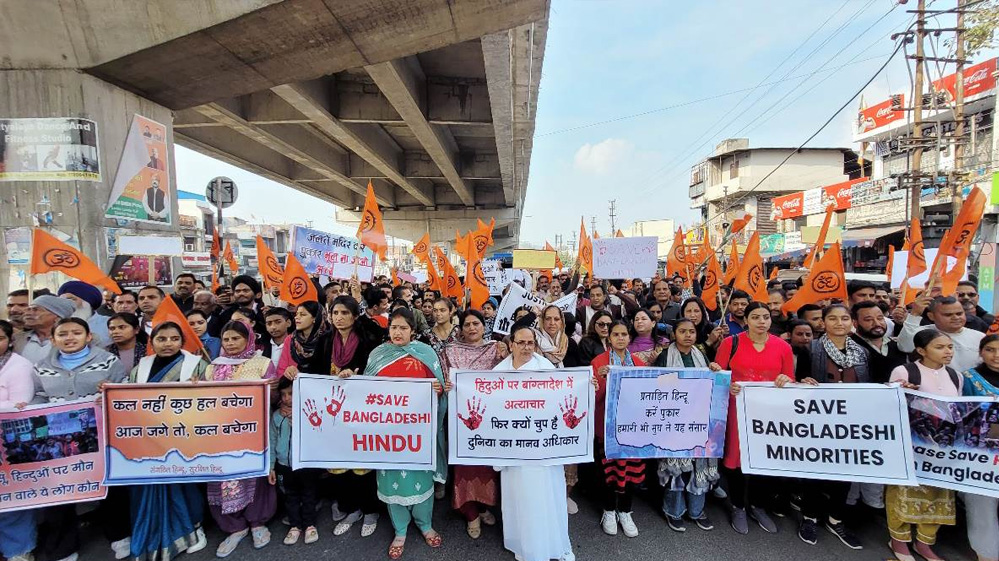 बांग्लादेश में हालिया महीनों में धार्मिक अल्पसंख्यकों पर हमले बढ़े हैं। रिपोर्ट में दावा किया गया है कि अल्पसंख्यकों के पास देश छोड़ने या इस्लाम में परिवर्तित होने के अलावा कोई विकल्प नहीं बचा है। इन समस्याओं का समाधान बांग्लादेश में हिंदुओं के लिए एक अलग घर बनाना है। बांग्लादेश में 1.3 करोड़ हिंदू हैं, जो अपने लिए एक अलग घर की मांग कर रहे हैं।