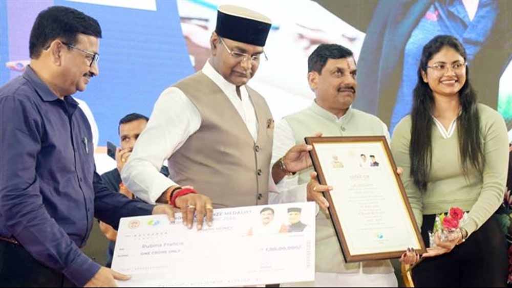 मुख्यमंत्री डॉ. यादव ने ओलम्पिक पदक हासिल करने वाले हॉकी खिलाड़ी श्री विवेक प्रसाद सागर, पैरालम्पिक पदक प्राप्त जूडो खिलाड़ी श्री कपिल परमार और शूटिंग खिलाड़ी सुश्री रूबीना फ्रांसिस को राज्य सरकार की ओर से एक-एक करोड़ रुपये की राशि का चैक भेंट कर सम्मानित किया। उन्होंने ओलम्पिक प्रतिभागी श्री ऐश्वर्य प्रताप सिंह तोमर, पैरालम्पिक प्रतिभागी सुश्री प्राची यादव और सुश्री पूजा ओझा को 10-10 लाख रुपये, विश्व 6-रेड स्नूकर वर्ल्ड चैम्पियनशिप के विजेता श्री कमल चावला को 3 लाख और डेफ शूटिंग चैम्पियनशिप के विजेता श्री चेतन हेमंत सप्कल को 2 लाख रूपये का चैक भेंट कर सम्मानित किया।
