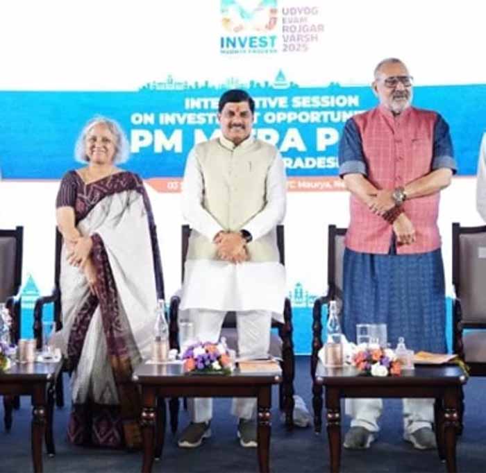 मुख्यमंत्री डॉ. यादव बुधवार को नई दिल्ली के होटल आईटीसी मौर्या में मध्यप्रदेश के धार स्थित पीएम-मित्रा पार्क में इन्वेस्टमेंट अपॉर्च्युनिटीज के इंटरैक्टिव सेशन को संबोधित कर रहे थे। इंटरैक्टिव सेशन में केंद्रीय वस्त्र मंत्री गिरिराज सिंह भी मौजूद रहे। सेशन में देश के टेक्सटाइल सेक्टर के बिजनेस टायकून्स, कॉमर्शियल हाउसेस और इन्वेस्टर्स शामिल हुए।