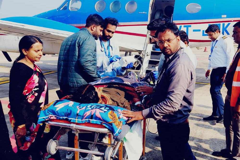 उल्लेखनीय है कि श्रीमती राजकुमारी गुप्ता को पेट दर्द और रक्तचाप कम होने की शिकायत पर 10 दिसंबर को जिला अस्पताल छतरपुर में भर्ती कराया गया था। जाँच के दौरान चिकित्सकों ने पाया कि उनके बाएं गुर्दे में एक बड़ी चोट और आंतरिक रक्तस्राव हो रहा है। जिला अस्पताल के सर्जन और विशेषज्ञ डॉक्टरों की टीम ने स्थिति की गंभीरता को देखते हुए उन्हें तत्काल भोपाल रेफर करने का निर्णय लिया। आयुष्मान कार्ड धारक होने के कारण मरीज को चिरायु मेडिकल कॉलेज, भोपाल में निःशुल्क उपचार के लिए रेफर किया गया। मरीज को जिला अस्पताल की टीम के सहयोग से खजुराहो एयरपोर्ट तक एम्बुलेंस से पहुँचाया गया और वहां से एयर एम्बुलेंस के जरिये भोपाल भेजा गया।