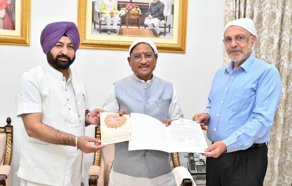 मुलाकात के दौरान दोनों मंत्रियों ने मुख्यमंत्री साय को 9वें सिख गुरु गुरु तेग बहादुर जी के 350वें शहीदी दिवस के उपलक्ष्य में आयोजित होने वाले विशेष कार्यक्रम में शामिल होने के लिए आमंत्रित किया। उन्होंने बताया कि यह आयोजन गुरु तेग बहादुर जी के बलिदान, त्याग और मानवता के प्रति उनके संदेश को जन-जन तक पहुँचाने के उद्देश्य से किया जा रहा है। इस आयोजन में देशभर से श्रद्धालुओं, संत महात्माओं और विभिन्न राज्यों के गणमान्य नागरिकों के सम्मिलित होने की संभावना है।