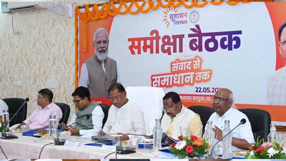 मुख्यमंत्री विष्णु देव साय ने आज सुशासन तिहार के अंतर्गत अम्बिकापुर में सरगुजा, बलरामपुर-रामानुजगंज और जशपुर जिलों में योजनाओं के क्रियान्वयन की समीक्षा की। इस दौरान उन्होंने अधिकारियों को स्पष्ट निर्देश देते हुए कहा कि जनहितकारी शासकीय योजनाओं को बेहतर तरीके से अमलीजामा पहनाने वाले जिलों को पुरस्कृत किया जाएगा।