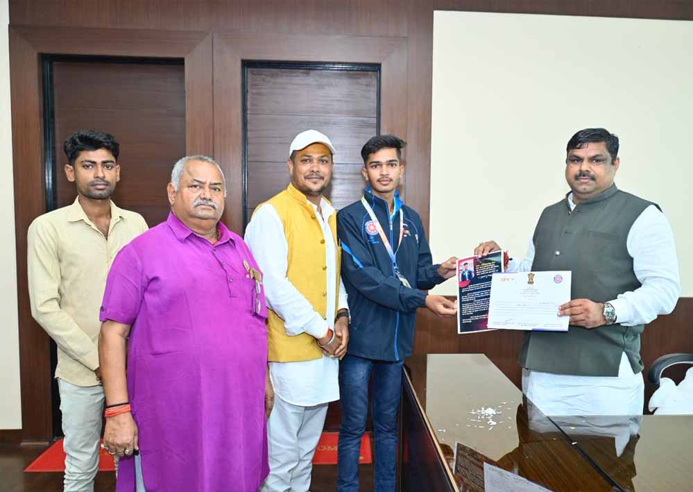 शासकीय कचना धुरवा कॉलेज, छुरा जिला – गरियाबंद में बी कॉम तीसरे सेमेस्टर के छात्र श्री ओमप्रकाश सेन, ग्राम दादरगांव पुराना निवासी हैं। कैम्प से लौटने के उपरांत उन्होंने मंत्री श्री यादव से मुलाकात की। मंत्री श्री यादव ने ओमप्रकाश सेन को राष्ट्रीय स्तर पर छत्तीसगढ़ की भागीदारी हेतु हार्दिक शुभकामनाएं देते हुए कहा कि युवा शक्ति ही देश का भविष्य है। प्रदेश के छात्र राष्ट्रीय मंचों पर सहभागिता कर समाज और राज्य का नाम रोशन कर रहे हैं। उन्होंने श्री ओमप्रकाश सेन के उज्ज्वल भविष्य की कामना करते हुए आगे भी इसी तरह सामाजिक व शैक्षणिक गतिविधियों में सक्रिय योगदान देते हुए आगे बढ़ते रहने के लिए प्रेरित और प्रोत्साहित किया।