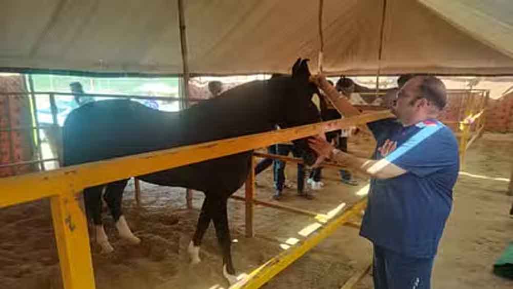अंतरराष्ट्रीय पुष्कर पशु मेले में बिकने के लिए बड़ी संख्या में पशुपालक अपने जानवरों को लेकर मेले में पहुंचे हैं। देश के सबसे बड़े पशु मेले में करोड़ों रुपये के पशुओं की खरीद-फरोख्त होगी। इस बार भी पुष्कर पशु मेले में अजमेर के बड़लिया स्थित टंडन स्टड फॉर्म हाउस से एक करोड़ रुपये का घोड़ा मेले में बिकने के लिए तैयार है। घोड़े के मालिक मयंक टंडन ने बताया कि यह शिवनाथ नाम का घोड़ा मारवाड़ी नस्ल का है, जिसके पिता का नाम सप्ताश और माता का नाम अभिजीत है। इस घोड़े की खासियत इसकी ब्रीड है, जो इसको इतना कीमती बनाती है। यह घोड़ा खाने के रिचका, चना, चापड़, मूंगफली और दलिया सहित अन्य खाना खिलाया जाता है। घोड़े शिवनाथ की उम्र साढ़े पांच साल है। मयंक टंडन ने बताया कि जब यह दो साल का था, तब इसे लेकर अपने फॉर्म हाउस आए थे। इसकी देखभाल के लिए छह लोगों का स्टॉफ है, जो इसका पालन पोषण करते हैं। टंडन स्टड फॉर्म के मयंक टंडन ने बताया कि वह 14 घोड़े मेले में लाए हैं। वह हर साल पुष्कर मेले में अपने घोड़े को लेकर आते हैं और इस साल भी उन्हें उम्मीद है कि उनके घोड़े मेले में आए खरीदारों को पसंद आएंगे।