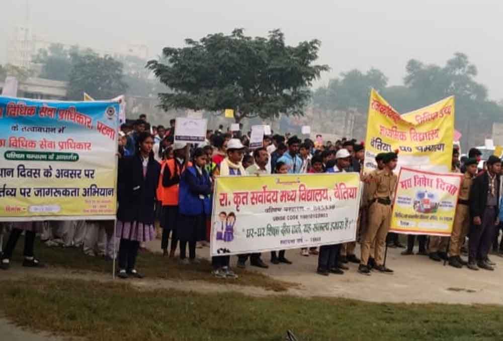संविधान दिवस के अवसर पर मंगलवार को राजस्थान राज्य विधिक सेवा प्राधिकरण, जयपुर के निर्देशानुसार राजस्थान के सभी 36 जिला विधिक सेवा प्राधिकरण मुख्यालय व 181 तालुका विधिक सेवा समिति द्वारा जिला व तालुका स्तर पर विभिन्न विद्यालय, महाविद्यालय पर विद्यार्थियों को संविधान की पालना की शपथ दिलाई गई एवं विधिक जागरूकता रैलियां निकलायी गई एवं उपस्थित लाभार्थियों को संविधान में वर्णित मौलिक अधिकारों, मूल अधिकारों, नीति निर्देशक तत्वों के बारें मेें जानकारी दी गई।