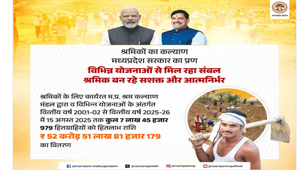 श्रमिकों के कल्याण के लिये मध्यप्रदेश में दो वर्षों में हुए उल्लेखनीय कार्य