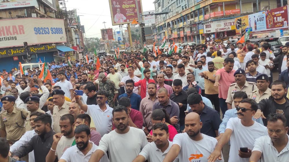 कार्यक्रम का समापन शारदा चौक स्थित श्यामा प्रसाद मुखर्जी जी की प्रतिमा स्थल के पास सरदार वल्लभ भाई पटेल जी के छाया चित्र के समक्ष माल्यार्पण एवं पुष्पांजलि अर्पित कर किया गया।