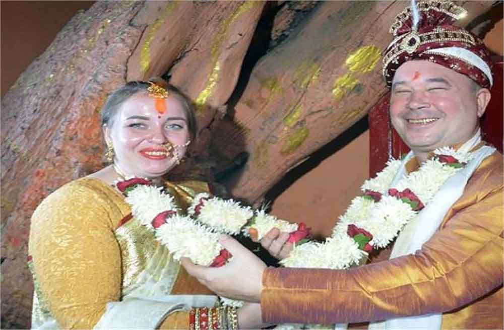 रूस आज केवल वैश्विक राजनीति और युद्ध की खबरों तक सीमित नहीं है। मॉस्को, सेंट पीटर्सबर्ग और साइबेरिया जैसे इलाकों में अब योग कक्षाएं, ध्यान शिविर और भगवद्गीता चर्चा समूह दिखाई देने लगे हैं। यह बदलाव बताता है कि रूसी समाज भीतर से किसी गहरे सुकून की तलाश में है और सनातन धर्म की ओर बढ़ रहा है। इसी की एक अन्य मिसाल उत्तर प्रदेश की आध्यात्मिक राजधानी काशी में देखने को मिली जहां बुधवार को सनातन संस्कृति की दिव्यता का एक अद्भुत दृश्य देखने को मिला। रूस से आए एक दंपत्ति ने हिंदू धर्म और सनातन परंपराओं से प्रभावित होकर गंगा तट पर वैदिक विधि से विवाह रचाया। बाबा श्री काशी विश्वनाथ को साक्षी मानकर दंपत्ति ने सात फेरे लिए और सात जन्मों तक साथ निभाने का संकल्प लिया।