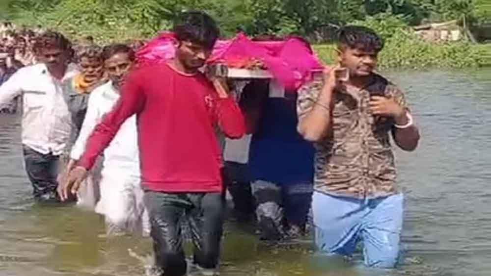 आलम यह हो जाता है कि लोगों को बरसात के दिनों में अर्थी को कंधे पर लेकर पानी से होकर निकलना पड़ता है। ऐसे ही हालात की बानगी बुधवार को भी देखने को मिली है। यहां कीरखेड़ा में किसी की मौत होने पर अंतिम यात्रा बनास नदी से होकर कस्बे के श्मशान घाट तक आती है। हालांकि, कीरखेड़ा सोमी ग्राम पंचायत का गांव हैं। लेकिन कीरखेड़ा के लोग मूलत: राशमी के ही होने के कारण कस्बे के श्मशान घाट पर ही शव का अंतिम संस्कार किया जाता है। कीरखेड़ा निवासी मोहनी बाई कीर मंगलवार रात को मौत हो गई थी। इसका अंतिम संस्कार बुधवार को हुआ। सभी रिश्तेदारों के आने के बाद अर्थी लेकर श्मशान के लिए निकले। अर्थी को बनास नदी से होकर श्मशान घाट लाया गया। इस दौरान अंतिम यात्रा में शामिल होने वाले परिजनों एवं रिश्तेदारों को करीब दो से तीन फीट गहरे पानी से होकर गुजरना पड़ा। नदी की चौड़ाई करीब 300 मीटर है। इससे लोगों में खासा आक्रोश भी दिखा। वर्षों पुरानी मांग है, लेकिन उसे पूरा नहीं किया जा रहा है। कीर समाज के जिलाध्यक्ष रतनलाल कीर ने बताया कि इस समस्या को लेकर कई बार उच्च स्तर पर भी अवगत कराया गया। लेकिन अभी तक रास्ते की समस्या जस की तस है। रतनलाल के अनुसार, यहां पक्का काजवे बना कर या कस्बे से बनास नदी पर बख्तावर पुरा के रास्ते बने एनिकट से पक्का रास्ता बना कर समस्या से निजात दिलाई जा सकती है। पक्का रास्ता नहीं होने से ग्रामणों में आक्रोश है। जब भी बरसात के दौरान किसी का निधन होता है, तब इस समस्या से जूझना पड़ता है।