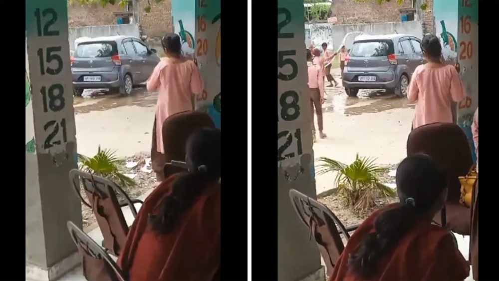 एक प्राथमिक स्कूल के छात्र-छात्राओं से परिसर में गाड़ी की सफाई-धुलवाई कराने का एक वीडियो सोशल मीडिया पर सामने आया है जिसमें कुछ विद्यार्थी किताब-कॉपी छोड़कर एक गाड़ी की सफाई-धुलाई करते देखे जा सकते हैं।