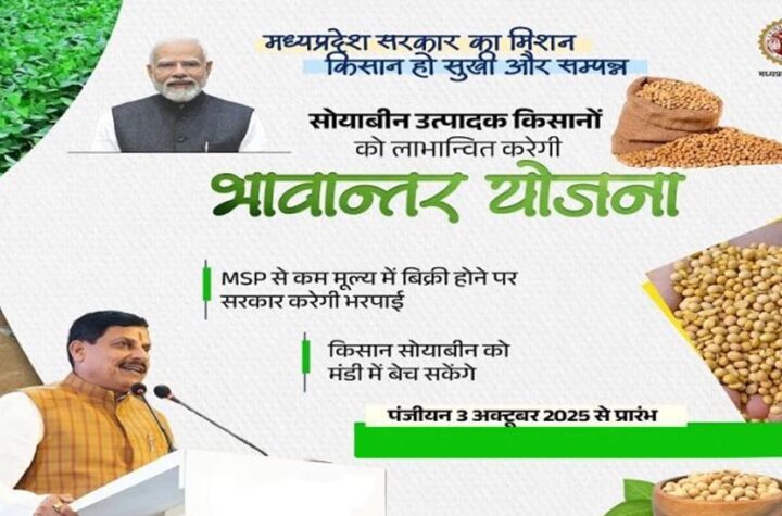 भोपाल भावांतर योजना 2025 के अंतर्गत सोयाबीन विक्रेता किसानों के लिए 1 दिसंबर को 4239 रुपए प्रति क्विंटल का मॉडल...