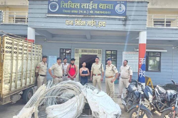 1 min read मध्य प्रदेश बिजली के तार चोरी करने वाली शातिर गैंग के विरूध्द रिपोर्ट के 24 घण्टे में ही थाना सिविल लाईन हरदा व्दारा की गई प्रभावी 6 months ago Expose Today News चोरी गए बिजली तारों सहित एक चार पहिया वाहन और दो मोटर सायकलें भी की गई जप्त। हरदा बिजली के...