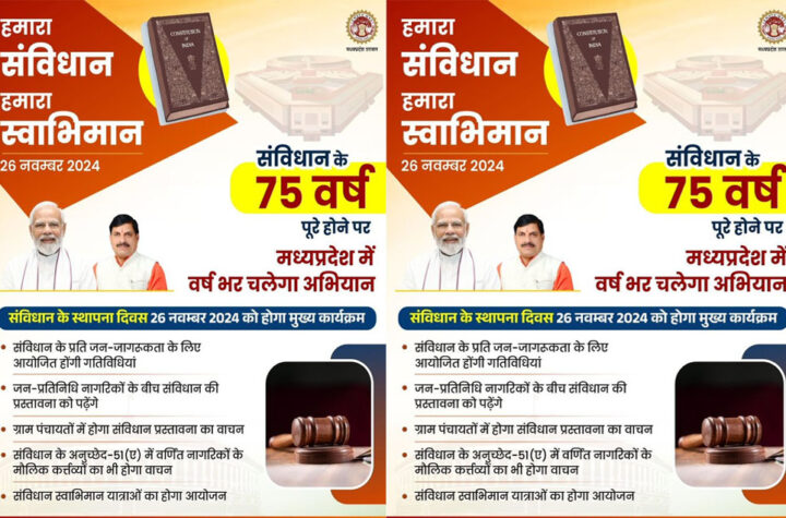 1 min read मध्य प्रदेश प्रदेश में 26 नवम्बर से प्रारंभ हो गया “हमारा संविधान-हमारा स्वाभिमान” अभियान 12 months ago Expose Today News भोपाल देश में 15 अगस्त 1947 को देश की आजादी के बाद तैयार किया गया संविधान 26 नवम्बर 1949 को...