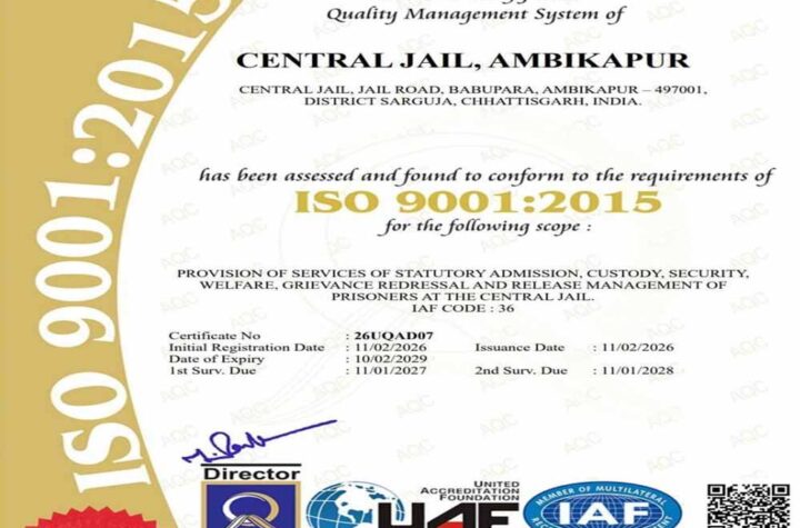रायपुर. छत्तीसगढ़ की जेल व्यवस्थाओं में गुणवत्ता, पारदर्शिता और जवाबदेही को सुदृढ़ करने की दिशा में एक महत्वपूर्ण उपलब्धि हासिल...
