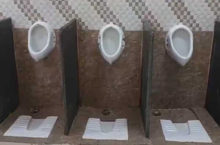 धार धार जिले के कुक्षी स्थित एक कन्या प्राथमिक विद्यालय में बालिकाओं के लिए बने शौचालय में पुरुषों के यूरिनल...