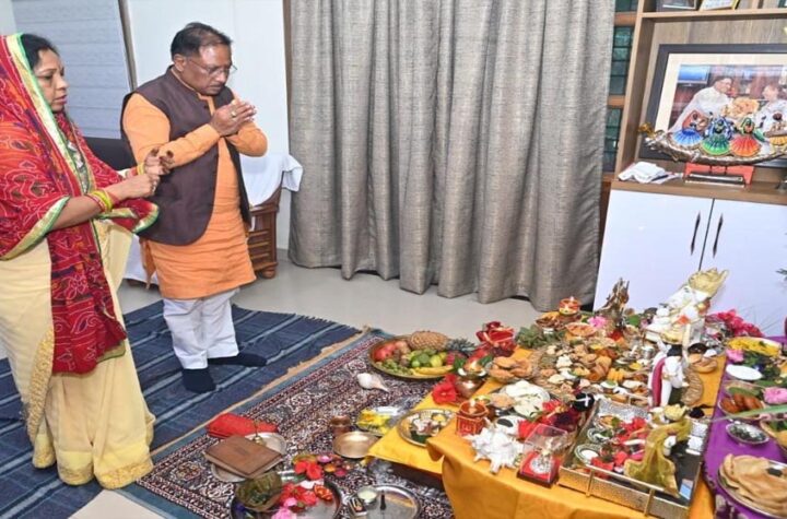 रायपुर : मुख्यमंत्री विष्णु देव साय ने की गोवर्धन पूजा, प्रदेश की सुख-समृद्धि और खुशहाली की कामना की