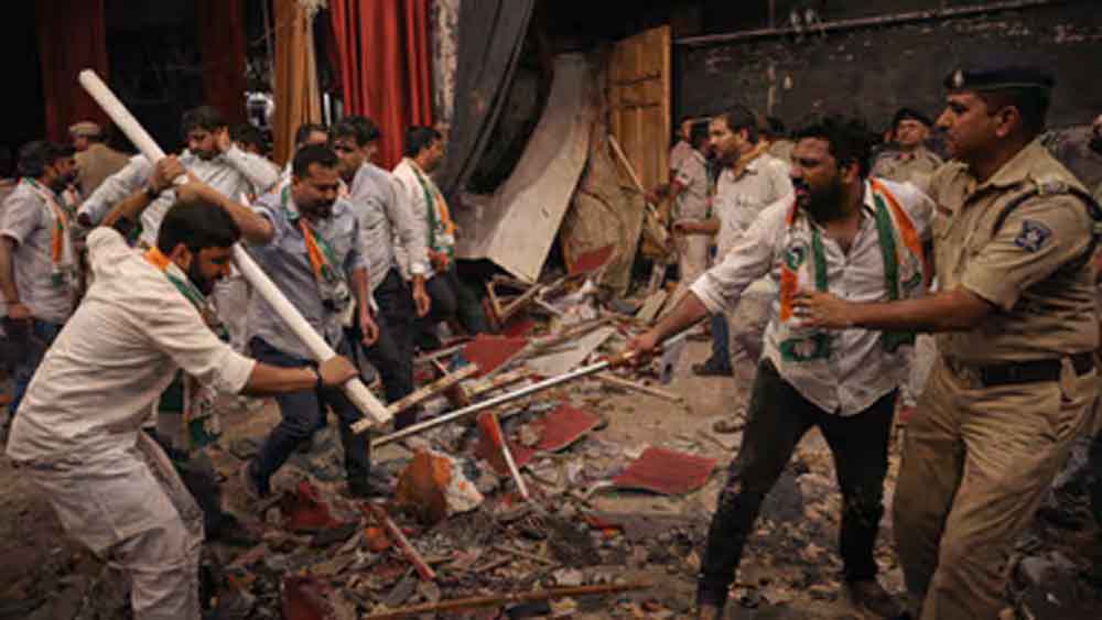 राजकोट में बड़ा विवाद खड़ा हो गया। यहां गुजराती नाटक 'मैं नाथूराम' के मंचन से पहले कांग्रेस कार्यकर्ताओं ने विरोध किया और हॉल में तोड़फोड़ कर दी। इस घटना के बाद पुलिस ने करीब 45 कांग्रेस कार्यकर्ताओं को हिरासत में लिया है। घटना शहर के हेमू गढ़वी हॉल में हुई, जहां रात 9:15 बजे नाटक का मंचन होना था।