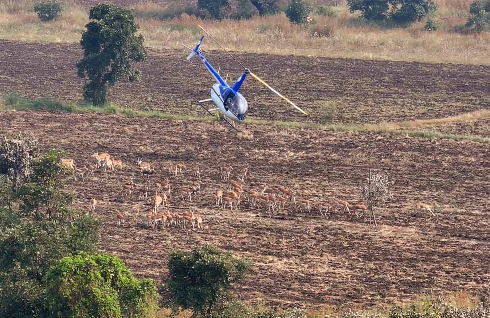 मुख्यमंत्री डॉ. मोहन यादव के निर्देश पर किसानों की फसलों को नुकसान से बचाने के लिये शाजापुर, उज्जैन और आस-पास के इलाकों में हेलीकॉप्टर और बोमा तकनीक का सफल प्रयोग वन्य जीवों को सुरक्षित पकड़ कर स्थानांतरित करने के लिए किया गया। मुख्यमंत्री डॉ. यादव ने एक बार फिर संवेदनशीलता दर्शाते हुए लंबे समय से कृष्णमृगों और नीलगायों द्वारा फसलों को पहुंचाये जा रहे भारी नुकसान से बचाने के लिये निर्देश जारी किये थे। मुख्यमंत्री डॉ. यादव के निर्देश पर किसानों की इस गंभीर समस्या के स्थायी समाधान के लिए देश में अपनी तरह का पहला प्रयास किया गया। अभियान के अंतर्गत वन्य जीवों को बिना हानि पहुँचाए अत्याधुनिक तकनीक के माध्यम से पकड़ कर सुरक्षित क्षेत्रों में छोड़ा गया।