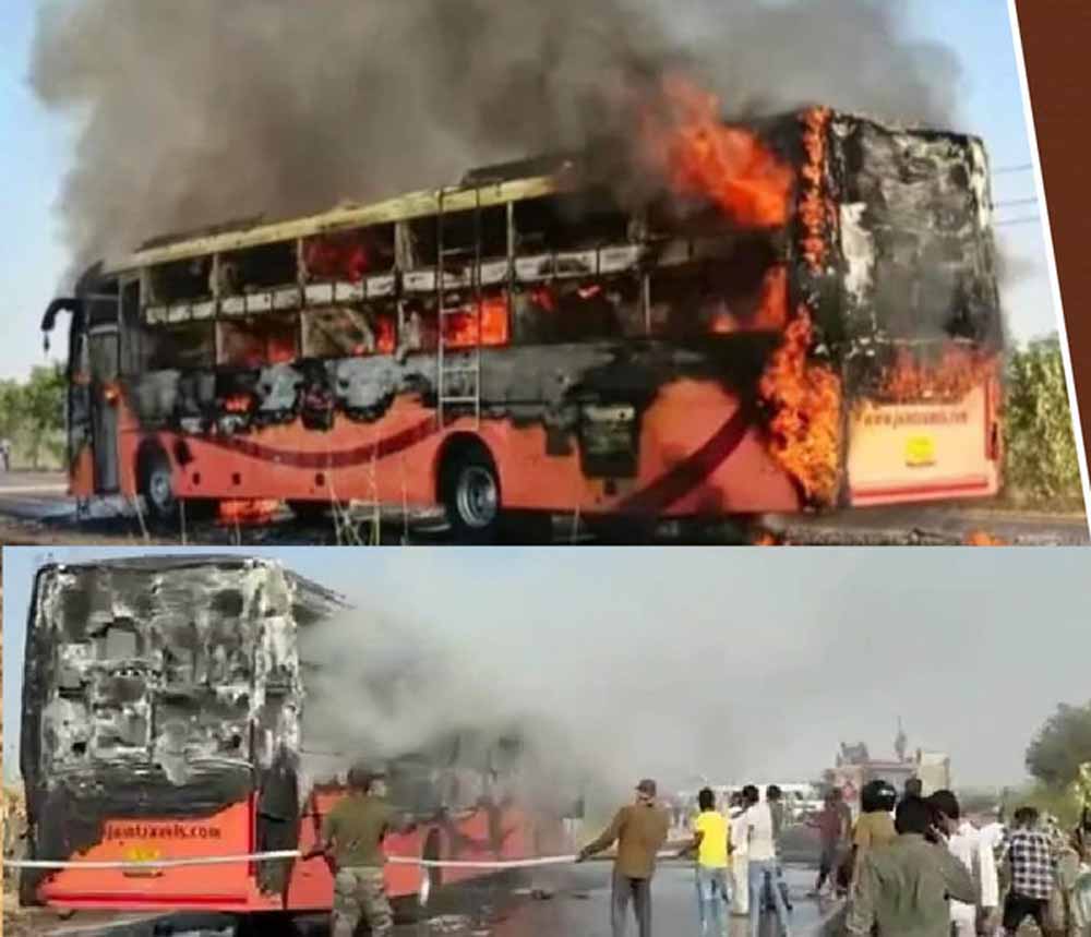 राजस्थान के जैसलमेर जिले में 14 अक्तूबर यानी मंगलवार दोपहर चलती एसी बस में अचानक भीषण आग लग गई थी। प्रत्यक्षदर्शियों के अनुसार, आग इतनी तेजी से फैली कि यात्रियों को बाहर निकलने का मौका ही नहीं मिला। बस का फाटक लॉक हो गया था, जिससे कई लोग अंदर फंस गए। कुछ यात्रियों ने खिड़कियां तोड़कर किसी तरह अपनी जान बचाई। बस में कुल 57 यात्री सवार थे। शुरुआती जांच में पता चला कि शॉर्ट सर्किट से बस के इंजन में आग लगी, जो देखते ही देखते पूरे वाहन में फैल गई। अधिकांश यात्री जोधपुर और जैसलमेर के ग्रामीण इलाकों से थे और कामकाज या परीक्षा से लौट रहे थे।