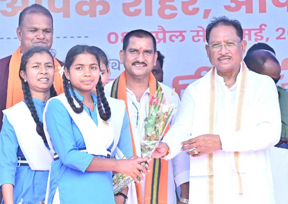 मुख्यमंत्री श्री साय ने कहा कि हमारी सरकार भ्रष्टाचार पर रोक लगाने के साथ कार्यवाही भी कर रही है। उन्होंने बताया कि जमीन की रजिस्ट्री के साथ सरकार ने नामांतरण की प्रक्रिया प्रारंभ की है। इससे कोई अधिकारी नामान्तरण के नाम पर किसी को घुमा नहीं पायेगा। एक घण्टे से कम समय में नामांतरण हो जाएगा। उन्होंने कहा कि मोदी की गारंटी को पूरा करने वाली यह सरकार सुशासन की दिशा में कार्य कर रही है। इस अवसर पर मुख्य सचिव श्री अमिताभ जैन, मुख्यमंत्री के प्रमुख सचिव श्री सुबोध सिंह, मुख्यमंत्री के सचिव श्री पी दयानन्द, जिला पंचायत अध्यक्ष श्री राजेश सुर्यवंशी,कलेक्टर, एसपी आदि उपस्थित थे।
