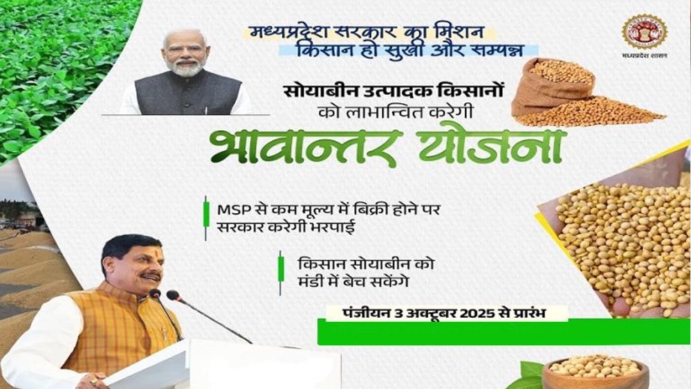 भावांतर योजना 2025 के अंतर्गत सोयाबीन विक्रेता किसानों के लिए आज 21 नवंबर को 4271 रुपए प्रति क्विंटल का मॉडल रेट जारी किया गया है। यह मॉडल रेट उन किसानों के लिए है जिन्होंने अपनी सोयाबीन की उपज मंडी प्रांगणों में विक्रय की है। इस मॉडल रेट के आधार पर ही भावांतर की राशि की गणना की जाएगी।
