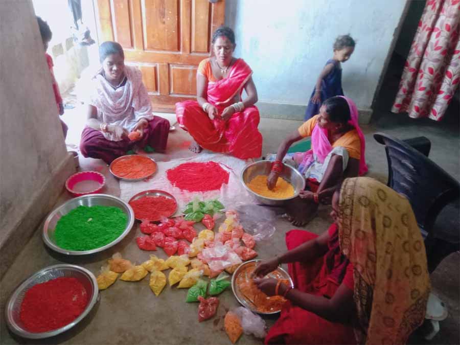 इस स्वसहायता समूह की महिलाएं होली के लिए अलग-अलग फूलों और सब्जियों से रंग तैयार कर रही हैं। ये महिलाओं पालक भाजी, लाल भाजी, टेसू के फूल, गेंदा फूलों से हर्बल गुलाल तैयार कर रहीं है। इन महिलाओं को पहले से ही प्रशासन की ओर से ट्रेनिंग दी गई है। पिछले पांच सालों में अब तक ये महिलाएं तकरीबन 150 किलो गुलाल बेच चुकी हैं.। खास बात यह है कि ये हर्बल गुलाल लोगों के चेहरे पर नुकसान नहीं पहुंचाता। यही कारण है कि लोग पहले से ही इसका ऑर्डर दे कर हर्बल गुलाल मंगवा रहे हैं। विकास खंड परियोजना प्रबंधक रोहित सोरी ने बताया कि समूह की महिलाएं इतामपार गांव जो इंद्रावती नदी के उस पार वहां की रहने वाली है। नक्सल हिंसा के चलते इन महिलाओं ने गांव को छोड़ दिया है और इस समय भैरमगढ़ के शिविर कैँप में रह रही हैं। इन महिलाओं को जिला प्रशासन के द्वारा रहने की सुविधा दी गई है। सोरी ने बताया कि इसके अलावा ये महिलाएं अलग- अलग व्यसाय कर जीवन यापन कर रही हैं।