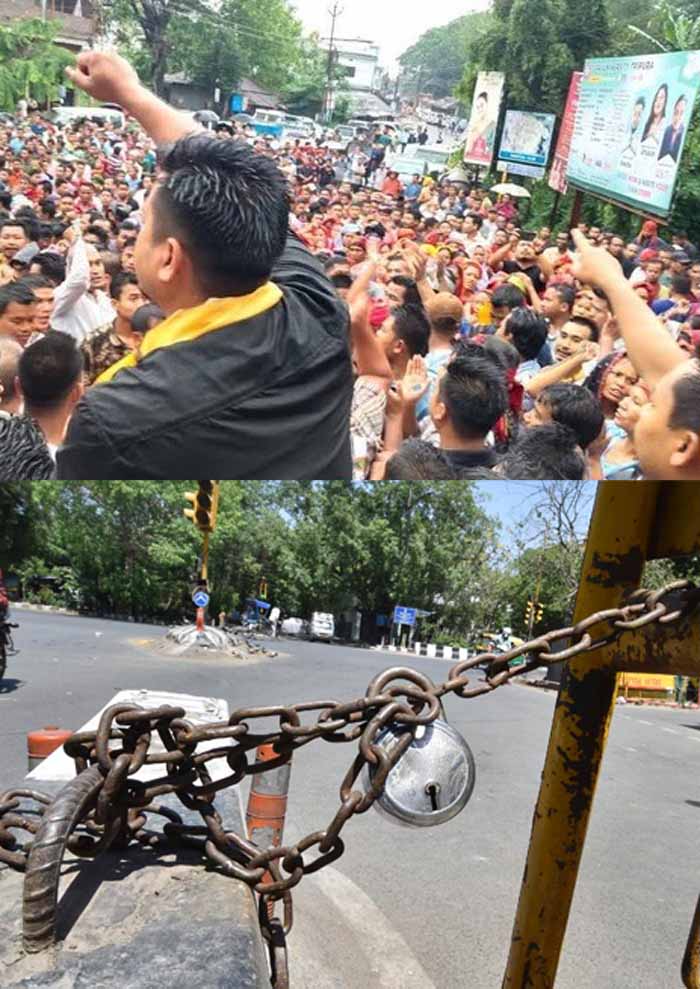 वाईटीएफ के हजारों कार्यकर्ताओं ने डीएम कार्यालय के सामने विरोध प्रदर्शन किया, उनके खिलाफ कार्रवाई की मांग की