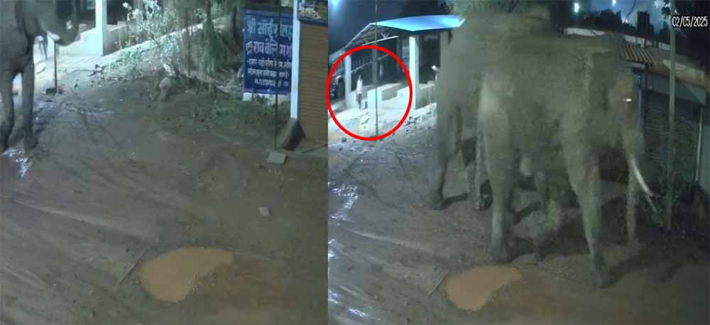 घटना आज सुबह 4 बजकर 44 मिनट की है, जब नगर के घोड़ा मंदिर के पास दो दंतैल हाथी नजर आए. दंतैल के आने से पहले तीन राहगीर रास्ते से जा रहे थे. थोडी दूर चले ही थे कि दंतैल को देखकर तीनों ने अपनी जान बचाई. यह पूरी घटना सीसीटीवी में कैद हो गई है, जिसमें राहगीरों की हालत का अंदाजा आसानी से लगाया जा सकता है.