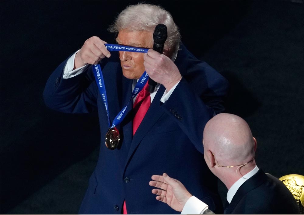 नोबेल शांति पुरस्कार की मांग कर रहे डोनाल्ड ट्रंप को नोबेल तो नहीं लेकिन फीफा शांति पुरस्कार जरूर मिल गया है। फुटबॉल की वैश्विक संस्था (FIFA) अमेरिका के राष्ट्रपति डोनाल्ड ट्रंप को अपने नए फीफा शांति पुरस्कार से सम्मानित किया है। यह पुरस्कार खेल से इतर वैश्विक शांति को ध्यान में रखकर बनाया गया है और ट्रंप इसके पहले विजेता हैं।