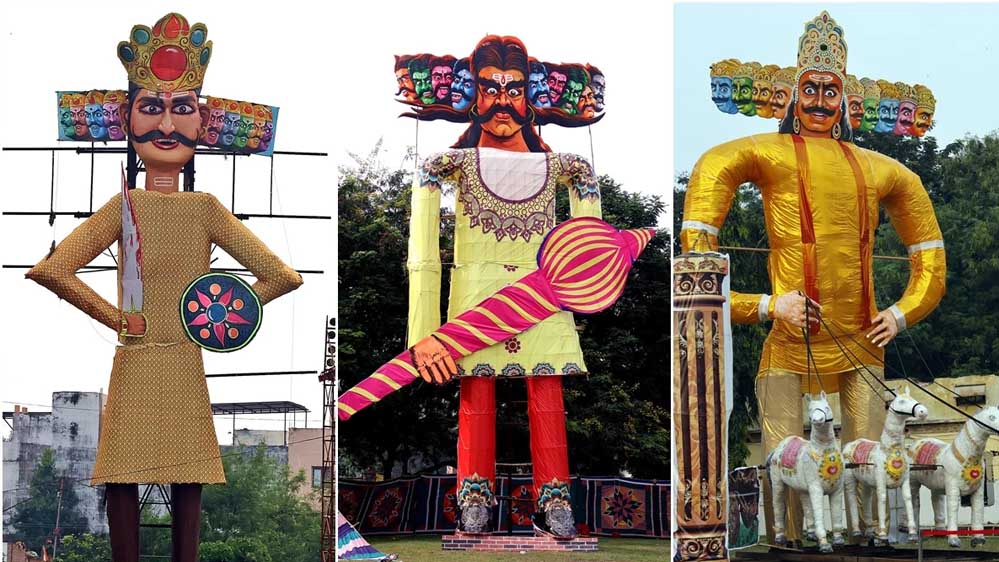 रावण के साथ कुंभकर्ण और मेघनाद के 60-60 फीट ऊंचे पुतले भी बनाए जा रहे हैं. इनका वजन 1-1 हजार किलो है और चेहरे 10-10 फीट के फाइबर से तैयार किए गए हैं.